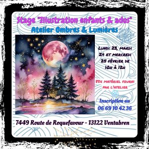 STAGE ILLUSTRATION ENFANTS-ADOS, 23, 24 et 25 Février 2026, 10h à 12h, 85€ matériel fourni. Réservations auprès de Nolwenn Ukmar au 0669104236